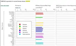 - Expression: The left column shows the resources of the data. Expression images and data, similar genes, PCR arrays, primers for human and in situ hybridization assays are included in this section.
