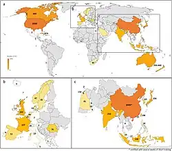 In 2023, it was estimated there were over 10,000 genetic counsellors globally, practicing in over 45 countries.[81] This is a marked increase over the 2018 data, which showed less than 7000 genetic counselors in at least 28 countries.[82] The increased numbers of genetic counsellors over the period 2018-2023 is mostly accounted for by growth in the number of genetic counsellors in the US.[81]