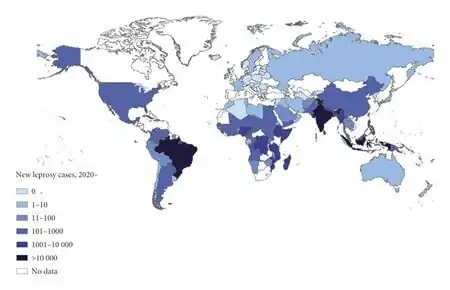 - ↑ Chen, Kou-Huang; Lin, Cheng-Yao; Su, Shih-Bin; Chen, Kow-Tong (2022). "Leprosy: A Review of Epidemiology, Clinical Diagnosis, and Management". Journal of Tropical Medicine. 2022 (1): 8652062. doi:10.1155/2022/8652062. ISSN 1687-9694.