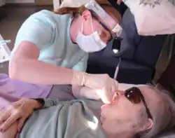 ![]() An elderly woman in a residential care home receiving dental treatment | |