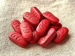 Geritol is a United States trademarked name for various dietary supplements, past and present.[1] Geritol is a brand name for several vitamin complexes plus iron or multimineral products in both liquid form and tablets containing from 9.5 to 18 mg of iron per daily dose.[2] The name conveys a connection with aging, as in "geriatric". The product has been promoted from almost the beginning of the mass media era as a cure for "iron-poor tired blood".