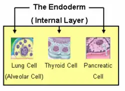 The endoderm is one of the germ layers formed during animal embryonic development. Cells migrating inward along the archenteron form the inner layer of the gastrula, which develops into the endoderm.