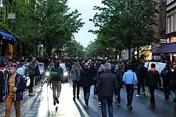 On 1 May 2020, when the German Trade Union Confederation did not hold its traditional demonstrations throughout Germany, a number of authorised and unauthorised gatherings took place in Berlin, Hamburg, Leipzig, Frankfurt and other German cities. In Berlin, 27 authorised protests were held, each capped at a maximum of 20 participants.[141] On May Day in Kreuzberg, several thousand protesters or spectators took part in demonstrations which, while unauthorised, were largely left alone by the police. Most of those gathered appeared to keep a safe distance from each other;[142] however, from the early evening onwards, many hundreds were observed not to do so, leading Berlin's Senator for the Interior Andreas Geisel to sharply condemn the protesters for their "geballte Unvernunft" ("bunched-up lack of common sense").[141]