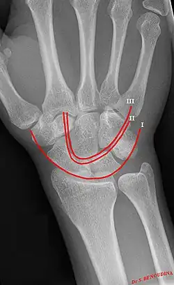 Gilula's lines are three arcs drawn on an AP radiograph of the wrist used to assess the alignment of the carpal bones.[1] They were first described by Louis A. Gilula in 1979.[2]