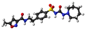 - ↑ Haupt E, Köberich W, Beyer J, Schöffling K (December 1971). "Pharmacodynamic aspects of tolbutamide, glibenclamide, glibornuride and glisoxepide. I. Dose response relations and repeated administration in diabetic subjects". Diabetologia. 7 (6): 449–54. doi:10.1007/bf01212061. PMID 5004178.