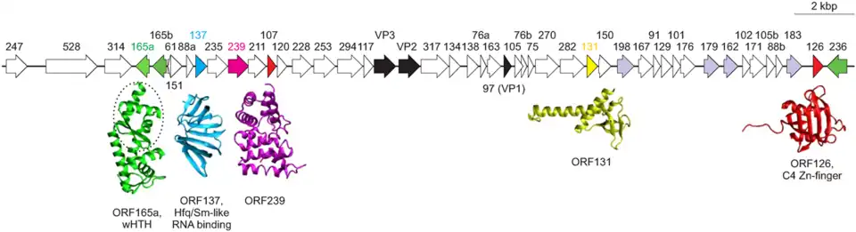 Genomes are linear dsDNA and non-segmented, around 20–30kb in length.[1][2]