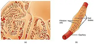 - Amyloidosis: This disease causes the buildup abnormal proteins called amyloid fibrils. Depositions of amyloid fibrils in the kidneys will eventually lead it to the primary filtration unit, the glomerulus, and cause blockages. Such a blockage will prevent the glomerulus from functioning properly and eventually causes damage.[11]