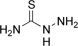 Thiosemicarbazide will form the five-membered ring in the structure. Before the cyclization of thiosemicarbazide, it will first undergo acylation to form a monothiodiacylhydrazine. This happens under the influence of a carboxylic acid such as isovaleric acid. The acid will donate an acyl group to the thiosemicarbazide. The intermediate compound cyclizes under the influence of an acid catalyst.