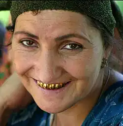Gold teeth are a form of dental prosthesis where the visible part of a tooth is replaced or capped with a prosthetic molded from gold.[1]