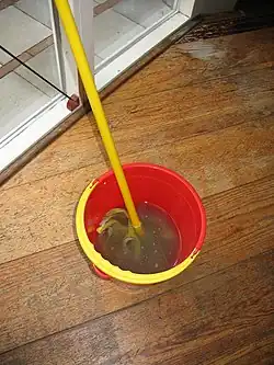 Example of a source of greywater in the household: dirty water from cleaning the floor