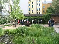 • Biological systems such as constructed wetlands or living walls and more natural 'backyard' small scale systems, such as small ponds or biodiverse landscapes that naturally purify greywater.[8]
