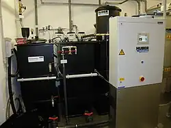 Greywater treatment plant with membrane bioreactor in the basement of an office building in Frankfurt