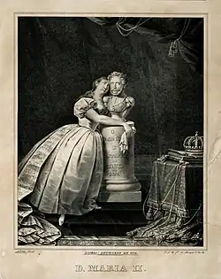 Queen Maria II of Portugal crying and hugging a bust of her late father King Pedro IV (also Emperor of Brazil as Pedro I), 1836