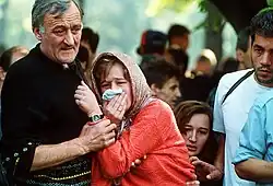 Grief can be experienced in a variety of ways.[15] Crying is a normal and natural part of grieving. Crying and talking about the loss is not the only healthy response and, if forced or excessive, can be harmful.[16][17] Lack of crying is also a natural, healthy reaction, potentially protective of the individual, and may also be seen as a sign of resilience.[16][17][18] Grieving people are also likely to become anxious.[15]