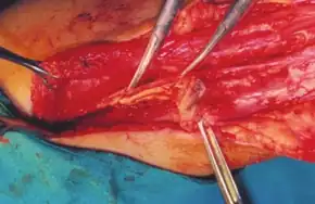 There is no vaccine or medicine to treat or prevent Guinea worm disease.[19] Untreated cases can lead to secondary infections, disability and amputations.[26] Once a Guinea worm begins emerging, the first step is to do a controlled submersion of the affected area in a bucket of water. This causes the worm to discharge many of its larvae, making it less infectious. The water is then discarded on the ground far away from any water source. Submersion results in subjective relief of the burning sensation and makes subsequent extraction of the worm easier. To extract the worm, a person must wrap the live worm around a piece of gauze or a stick. The process may take several weeks.[2] Gently massaging the area around the blister can help loosen the worm.[10] This is nearly the same treatment that is noted in the famous ancient Egyptian medical text, the Ebers papyrus from c. 1550 BC.[11] Some people have said that extracting a Guinea worm feels like the afflicted area is on fire.[28][29] However, if the infection is identified before an ulcer forms, the worm can also be surgically removed by a trained doctor in a medical facility.[22]