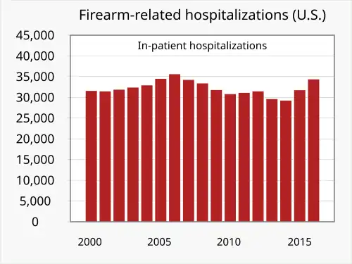 Gun violence is a term of political, economic and sociological interest referring to the tens of thousands of annual firearms-related deaths and injuries occurring in the United States.[2]