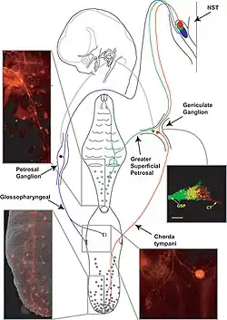 - ↑ Whitehead, Mark C. (1986). "Anatomy of the gustatory system in the hamster: Synaptology of facial afferent terminals in the solitary nucleus". Journal of Comparative Neurology. 244 (1): 72–85. doi:10.1002/cne.902440106. ISSN 1096-9861. PMID 3950091. S2CID 24265928.