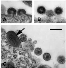 Human endogenous retrovirus K (HERV-K) is a family of human endogenous retroviruses associated with malignant tumors of the testes.[1][2][3][4] Phylogenetically, the HERV-K group belongs to the ERV2 or Class II or Betaretrovirus-like supergroup.[5] Over the past several years, it has been found that this group of ERVs play an important role in embryogenesis, but their expression is silenced in most cell types in healthy adults.[6] The HERV-K family, and particularly its subgroup HML-2, is the youngest and most transcriptionally active group and hence, it is the best studied among other ERVs. Reactivation of it or anomalous expression of HML-2 in adult tissues has been associated with various types of cancer [7][8][9] and with neurodegenerative diseases such as amytrophic lateral sclerosis (ALS).[10][5] Endogenous retrovirus K (HERV-K) is related to mammary tumor virus in mice. It exists in the human and cercopithecoid genomes. Human genome contains hundreds of copies of HERV-K and many of them possess complete open reading frames (ORFs) that are transcribed and translated, especially in early embryogenesis and in malignancies.[5][11] HERV-K is also found in apes and Old World monkeys. It is uncertain how long ago in primate evolution the full-length HERV-K proviruses which are in the human genome today were created.[12]