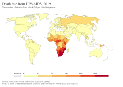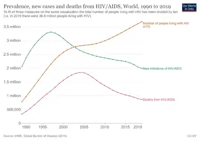 219. Roser, Max; Ritchie, Hannah (April 3, 2018). "HIV / AIDS". Our World in Data. Archived from the original on October 4, 2019. Retrieved October 4, 2019.