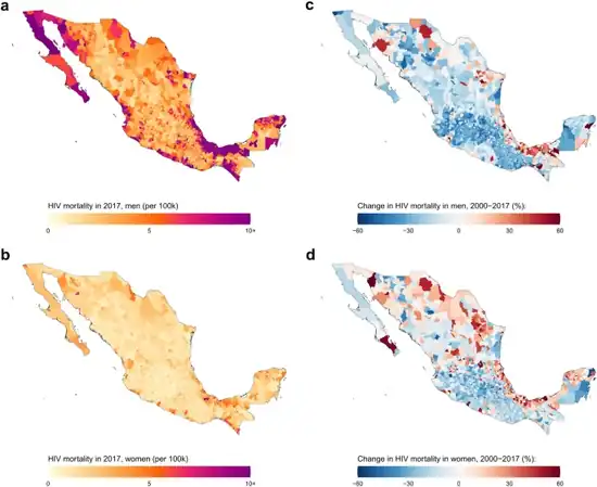 - ↑ "Mapping subnational HIV mortality in six Latin American countries with incomplete vital registration systems". BMC Medicine. 19 (1): 4. 8 January 2021. doi:10.1186/s12916-020-01876-4. ISSN 1741-7015.
