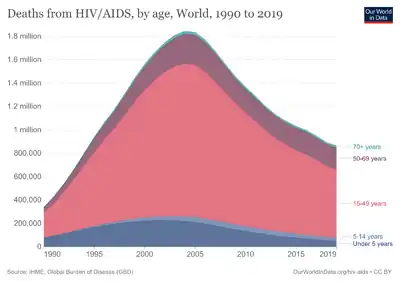 - ↑ Horvath S, Levine AJ (November 2015). "HIV-1 Infection Accelerates Age According to the Epigenetic Clock". The Journal of Infectious Diseases. 212 (10): 1563–73. doi:10.1093/infdis/jiv277. PMC 4621253. PMID 25969563.