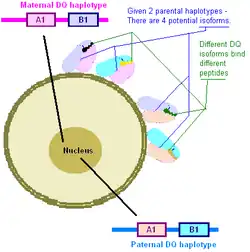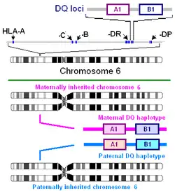 - ↑ Louka A, Nilsson S, Olsson M, Talseth B, Lie B, Ek J, Gudjónsdóttir A, Ascher H, Sollid L (2002). "HLA in coeliac disease families: a novel test of risk modification by the 'other' haplotype when at least one DQA1*05-DQB1*02 haplotype is carried". Tissue Antigens. 60 (2): 147–54. doi:10.1034/j.1399-0039.2002.600205.x. PMID 12392509.