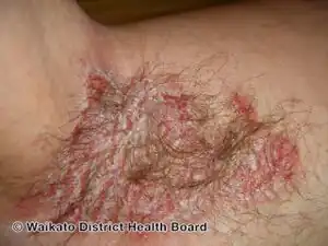 Right armpit skin affected during Hailey-Hailey disease flare