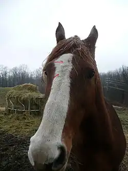 There are many (mostly apocryphal) theories concerning horse behavior and their hair whorls.[6]