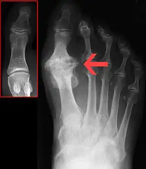 - ↑ 2.0 2.1 2.2 2.3 2.4 Patel, J; Swords, M (January 2025). "Hallux Rigidus". StatPearls. PMID 32310479.