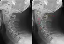 - ↑ Pratt, H.; Davies, E.; King, L. (2008). "Traumatic injuries of the c1/c2 complex: computed tomographic imaging appearances". Curr Probl Diagn Radiol. 37 (1): 26–38. doi:10.1067/j.cpradiol.2007.07.001. PMID 18054664.