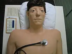 First demonstrated in 1968, the Harvey simulator is a mannequin that performs more than 25 different cardiac functions of the human body, varying blood pressure, breathing, pulse, heart sounds and heart murmurs.[1][4][5] As years have passed, Harvey has been upgraded with the addition of more advanced cardiac functions, with the intention of creating a general and also in-depth program in cardiology.[1]