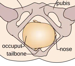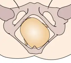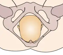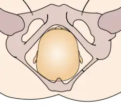 In obstetrics, a cephalic presentation or head presentation or head-first presentation is a situation at childbirth where the fetus is in a longitudinal lie and the head enters the pelvis first; the most common form of cephalic presentation is the vertex presentation, where the occiput is the leading part (the part that first enters the birth canal).[1] All other presentations are abnormal (malpresentations) and are either more difficult to deliver or not deliverable by natural means.