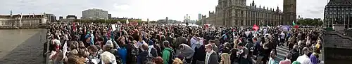 On 9 October 2011, a protest organised by UK Uncut took place on Westminster Bridge. an estimated 2,000 health workers and activists attended the protest.[61]