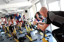 Most 2010-era health clubs offer group exercise classes that are conducted by certified fitness instructors or trainers. Group exercise classes are often considered the most important service in the centers for members' engagement.[3] Many types of group exercise classes exist, but generally these include classes based on aerobics, cycling (spinning), boxing or martial arts, high intensity training, step yoga, regular yoga and hot (Bikram) yoga, pilates, muscle training, stretching, and self-defense classes such as Krav Maga and Brazilian Jiu-Jitsu. Health clubs with swimming pools often offer aqua aerobics classes. The instructors often must gain certification in order to teach these classes and ensure participant safety.