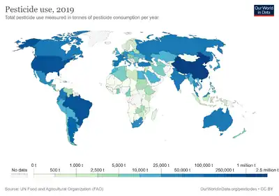 - ↑ 25.0 25.1 25.2 25.3 Rani L, Thapa K, Kanojia N, Sharma N, Singh S, Grewal AS, et al. (2021-02-10). "An extensive review on the consequences of chemical pesticides on human health and environment". Journal of Cleaner Production. 283: 124657. doi:10.1016/j.jclepro.2020.124657. ISSN 0959-6526. S2CID 225137646.