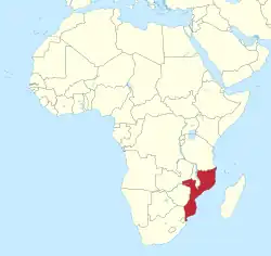 A reference for the location of Mozambique within the continent of Africa