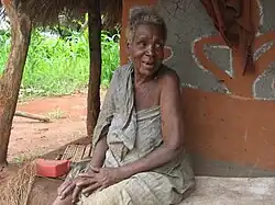 Rufina Koreia (96 years old) in front of her house in Zembe village, Manica province of Mozambique, struggling with malaria.