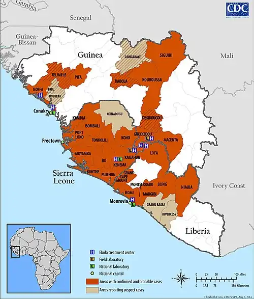 - ↑ "Ebola virus disease, West Africa – update 6 August 2014". Archived from the original on 8 August 2014. Retrieved 29 September 2014.