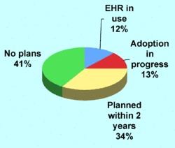 - ↑ Gans D, Kralewski J, Hammons T, Dowd B (2005). "Medical groups' adoption of electronic health records and information systems". Health Affairs. 24 (5): 1323–1333. doi:10.1377/hlthaff.24.5.1323. PMID 16162580. Retrieved 2006-07-04.