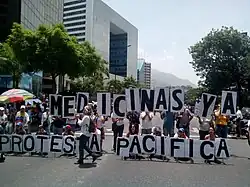 Venezuelans protesting in 2017 for medicine due to the shortages in Venezuela