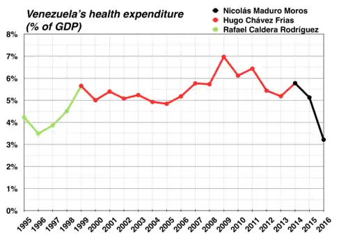 Healthcare spending by percentage of Venezuela's GDP[8]