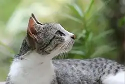 A cat can hear high-frequency sounds up to two octaves higher than a human.