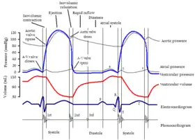 - ↑ Kawaguchi M, Hay I, Fetics B, Kass DA (February 2003). "Combined ventricular systolic and arterial stiffening in patients with heart failure and preserved ejection fraction: implications for systolic and diastolic reserve limitations". Circulation. 107 (5): 714–720. doi:10.1161/01.cir.0000048123.22359.a0. PMID 12578874.