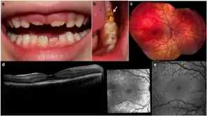 late-onset retinal pigmentation abnormalities. - Amelogenesis imperfecta