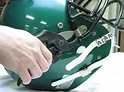 - ↑ Copeland AJ, Decoster LC, Swartz EE, Gattie ER, Gale SD (November 2007). "Combined tool approach is 100% successful for emergency football face mask removal". Clin J Sport Med. 17 (6): 452–7. doi:10.1097/JSM.0b013e31815b187d. PMID 17993787. S2CID 34014154.