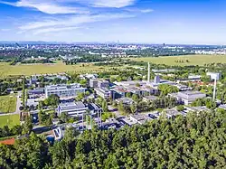 The main campus is located in Neuherberg, a district of Oberschleißheim, right outside of Munich’s city borders. The campus has a size of 52.3 hectares. In addition, the center maintains research facilities inside the city area of Munich, Augsburg, Tübingen, Hanover, Dresden and Leipzig.[2]