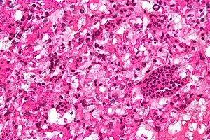 | Micrograph of a cerebellar hemangioblastoma. HPS stain. | |