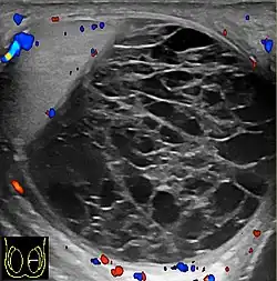 - ↑ Kühn, Anna L.; Scortegagna, Eduardo; Nowitzki, Kristina M.; Kim, Young H. (July 2016). "Ultrasonography of the scrotum in adults". Ultrasonography. 35 (3): 180–197. doi:10.14366/usg.15075. PMC 4939719. PMID 26983766.