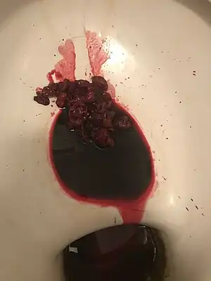 Hematochezia can be due to upper gastrointestinal bleeding. However, as the blood from such a bleed is usually chemically modified by action of acid and enzymes, it presents more commonly as black "tarry" feces known as melena. Haematochezia from an upper gastrointestinal source is an ominous sign, as it suggests a very significant bleed which is more likely to be life-threatening. Eating beetroot can cause harmless red-colored feces (beeturia) because of insufficient metabolism of a red pigment, and is a differential sign that may be mistaken as hematochezia. Consumption of dragon fruit (pitaya) or blackberries may also cause red or black discoloration of the stool and sometimes the urine (pseudohematuria). This too, is a differential sign that is sometimes mistaken for hematochezia.