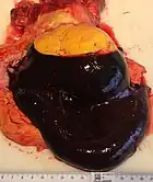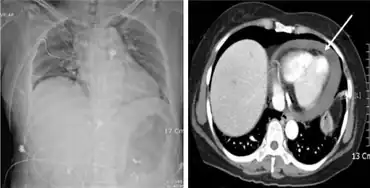 The condition can be caused by full-thickness necrosis (death) of the myocardium (heart muscle) after myocardial infarction, chest trauma,[2] and by over-prescription of anticoagulants.[3][4] Other causes include ruptured aneurysm of sinus of Valsalva and other aneurysms of the aortic arch.[5]